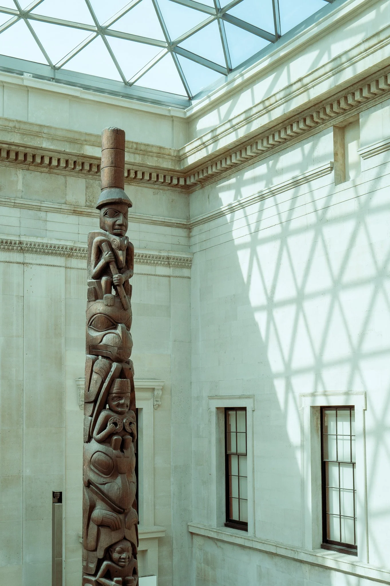 The Queen Elizabeth II Great Court now serves as the museum's main entrance hall. In the centre stands a stone rotunda which encases the Reading Room, ventialiation shafts and support for the roof. Staircases lead up to temporary exhibition spaces and offer natural seating areas where people gather to rest and reflect.