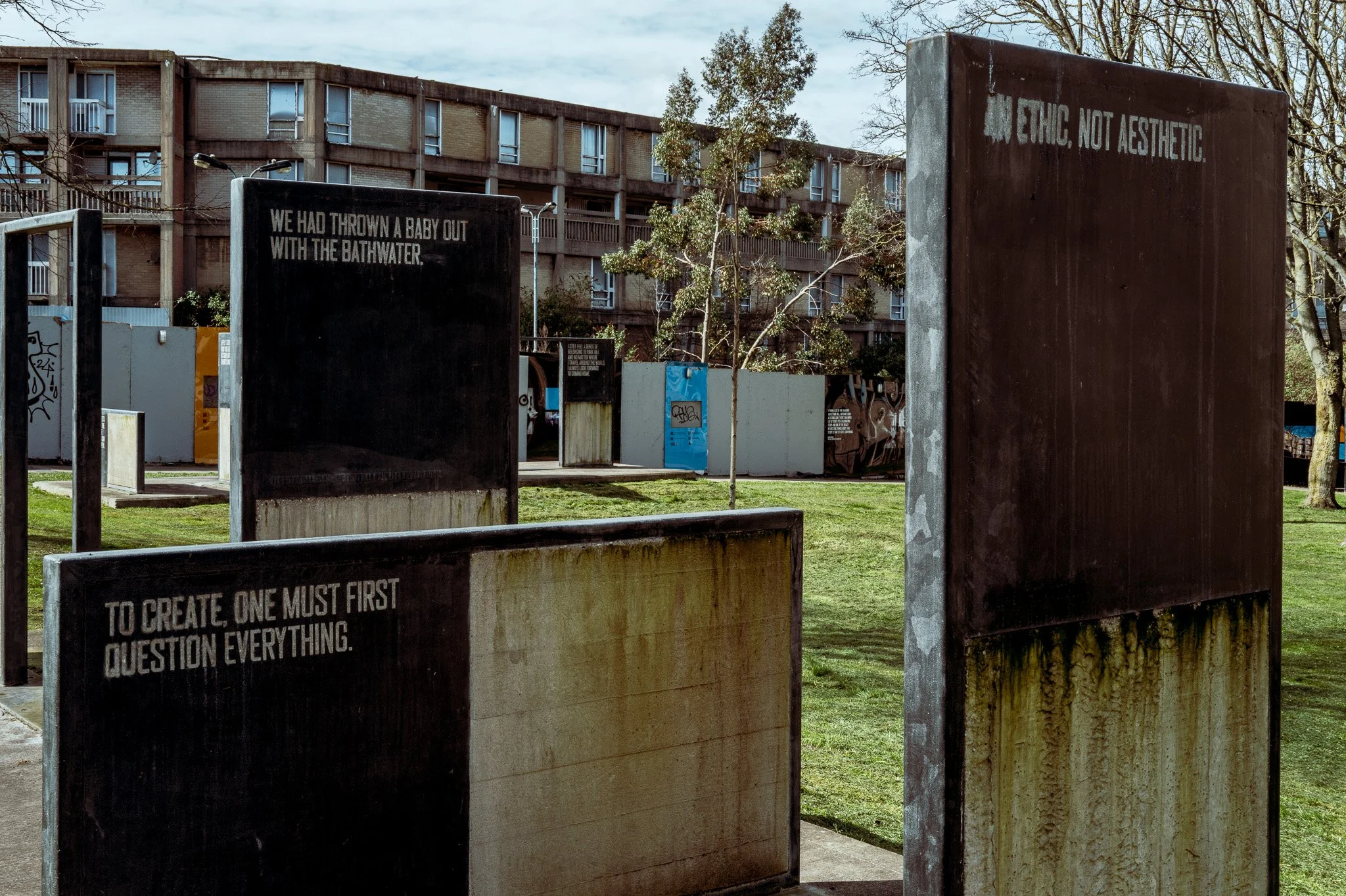 The graffiti Clare Middleton I love you will u marry me was spray-painted by resident Jason Lowe in 2001 and preserved during the refurbishment. Clare Middleton died of cancer in 2007.