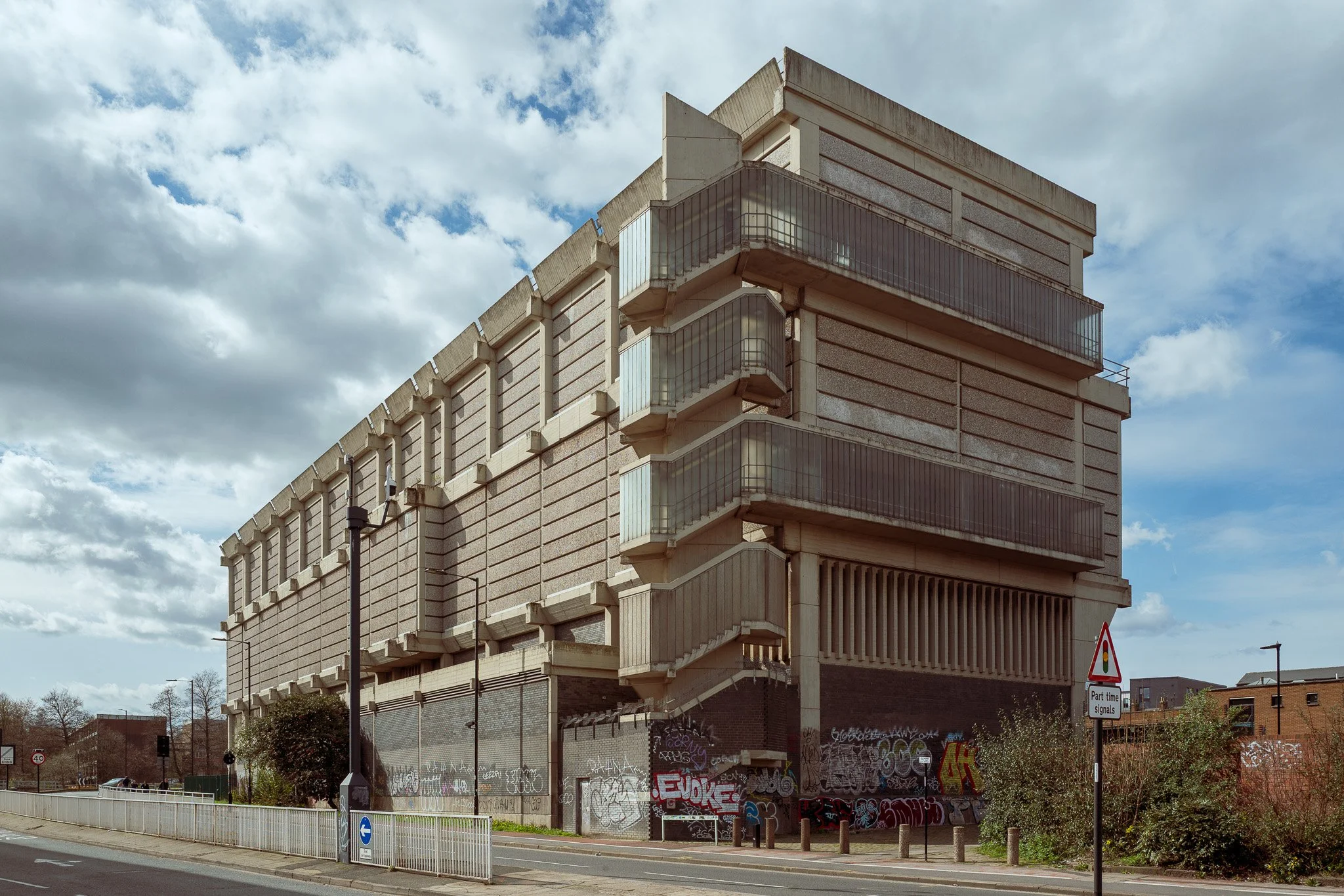 Moore Street Electricity Substation (1968 - Grade II) - an unsubtle concrete block built to feed the steel industry.